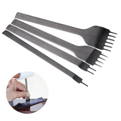 Punch even and neat holes in leather with this quick and easy to use hole prong set. Includes 4 tools: 1 hole punch, 2 hole punch, 4 hole punch, an...