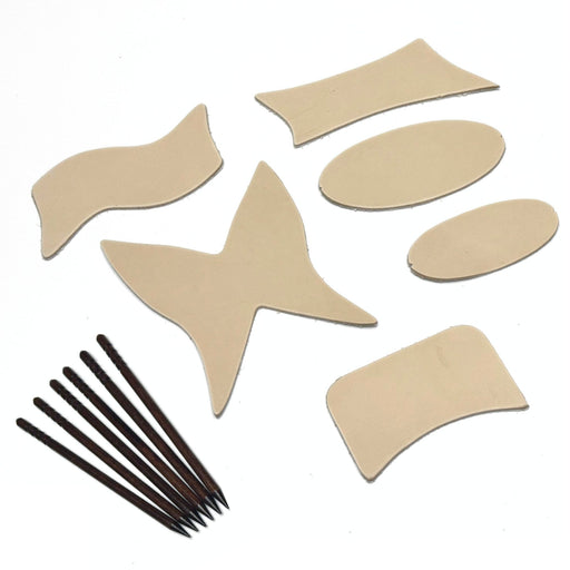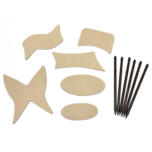 Oak Leather Tooling Shapes for Crafts - Arrowhead - Badge - Cross - Heart - Rectangle - 12 Pack