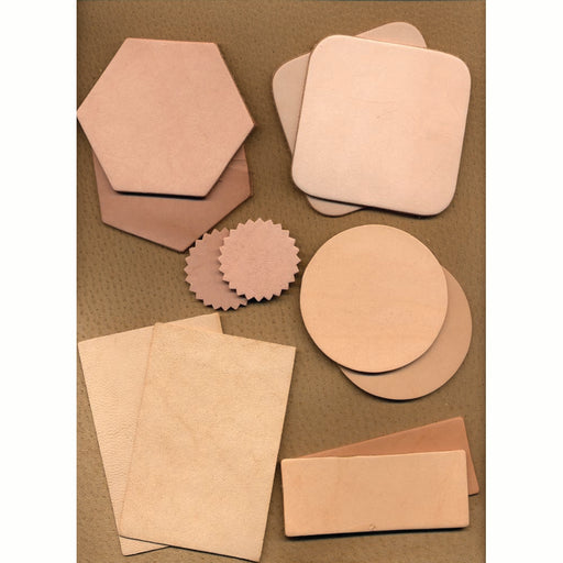 Our coaster shapes are cut from 7-9 oz oak vegetable leather. Great for coasters, key fobs, conchos, and more. Can be personalized with names, quot...