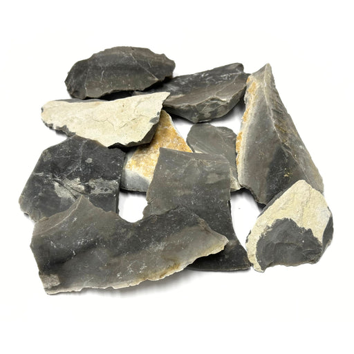 These flint chips are an essential tool for starting your own primitive fire. Approximate size: half dollar size or larger. Sold in pack of 10.