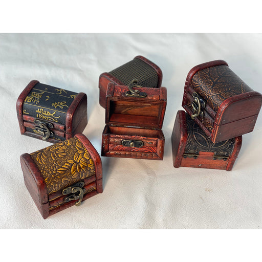 Hand Crafted Leather & Wood Jewelry Boxes - Set of 6 - Embossed Leather Design Boxes