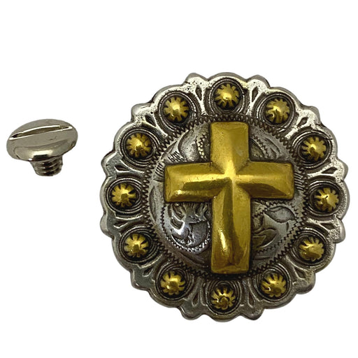 4 Pack Christian Cross Gold Screw Back Conchos - 1 1/4"