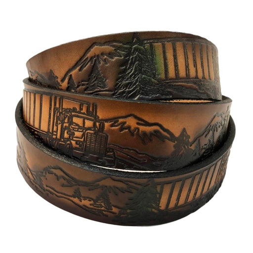 Truck Themed Deeply Embossed Dyed Leather Belt - 42" to 54"