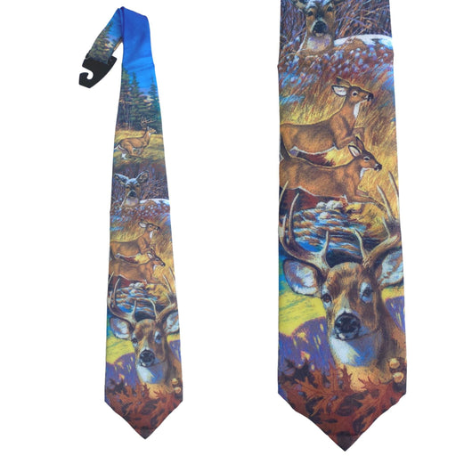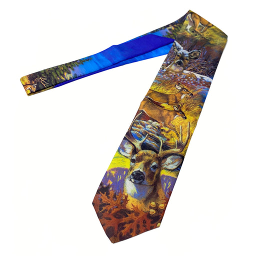 Whitetail Deer Design Sportsman Tie - Hand Finished Colorful Wildlife Dress Necktie