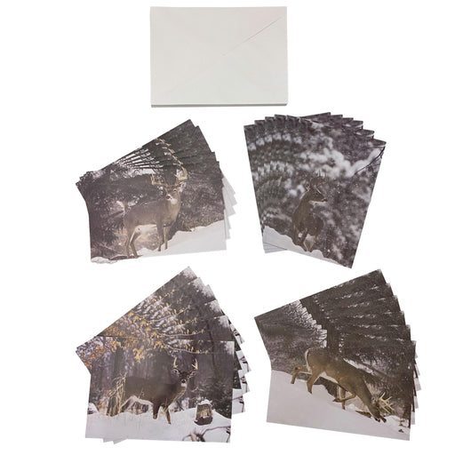 Deer Hunter Greeting Cards - Whitetail Deer Stationary Note Cards - 4 Winter Scenes