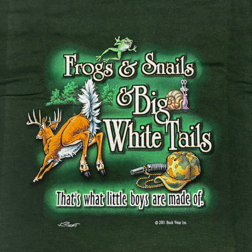 "Frogs & Snails & Big Whitetails - That's What Little Boys Are Made Of" Little Hunter Green T-shirt - Youth L