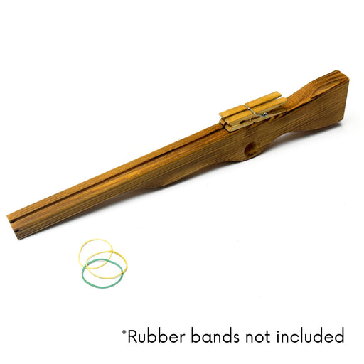 Classic wooden rubber band guns make a fun game for kids. Three styles available:- 18.5" Shotgun with 2 clothespin shooting mechanism- 11.5" Gun wi...