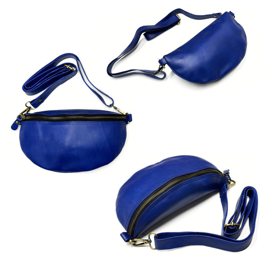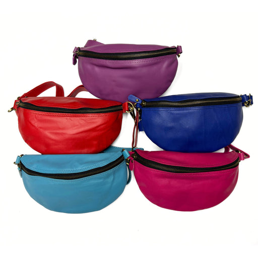 Leather Waist Pouch with Adjustable Leather Strap - Colorful Fanny Pack or Crossbody Bag - Turquoise, Blue, Pink, Purple, or Red