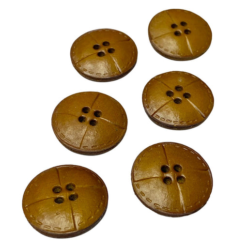 Vintage Light Brown Textured Leather Buttons - Pack of 6 Round Buttons