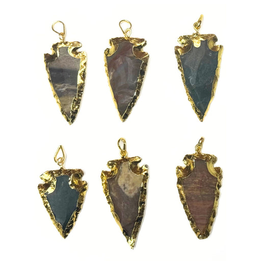 Craft beautiful and unique jewelry with our Gold Plated Agate Arrowhead Pendants. These pendants are approximately 1.5" in size and come in assorte...