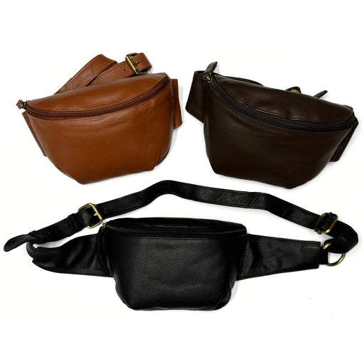 Cowhide Leather Fanny Pack - Black, Brown, or Tan Waist Pouch for Travel