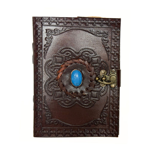 Leather Journal with Turquoise Stone, Floral Designs, and Swivel Lock - Embossed Notebook with Blank Paper for Writing or Drawing