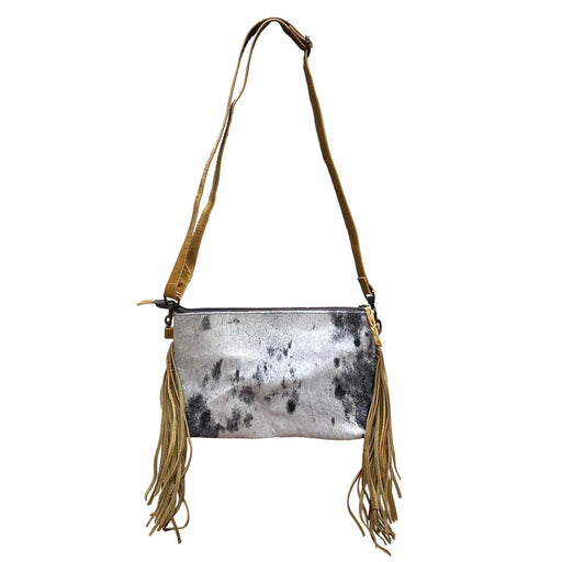 Hair On Crossbody Leather Purse with Fringe Accent