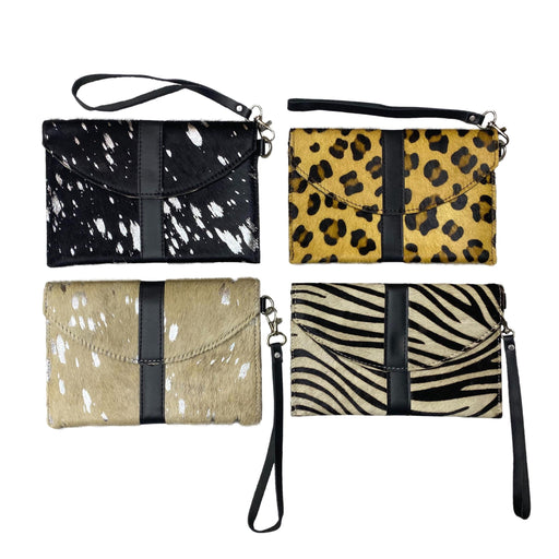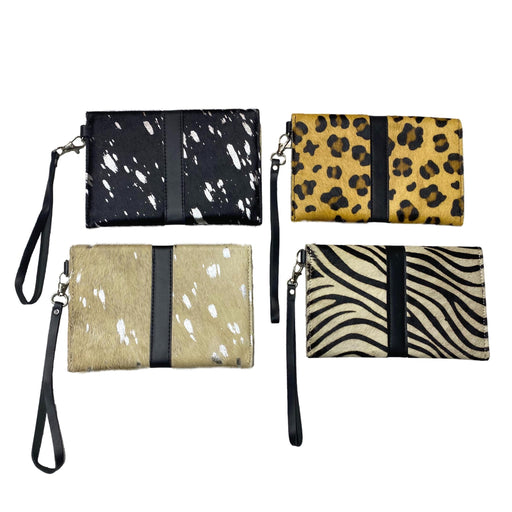 Hair On Hide Flap Over Wristlet - Printed Design Clutch