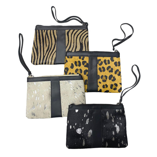 Hair On Hide Wristlet with Zipper Closure - Printed Design Zipper Clutch