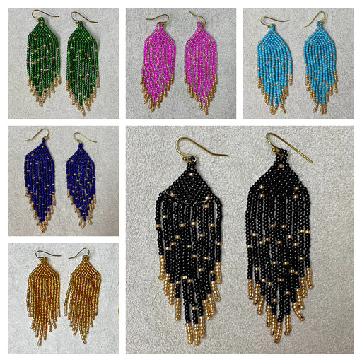 Quality assortment of beautiful beaded earrings. These fringe earrings are hand crafted with colorful Czech seed beads. Sold in a pack of 6 pairs o...
