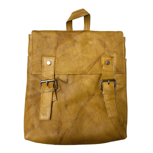 Leather Flap Over Backpack - Casual Travel Bag - Tan