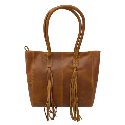 Introducing the perfect combination of style and function: the Leather Tote! This luxurious bag is crafted with a braided leather detail and fringe...