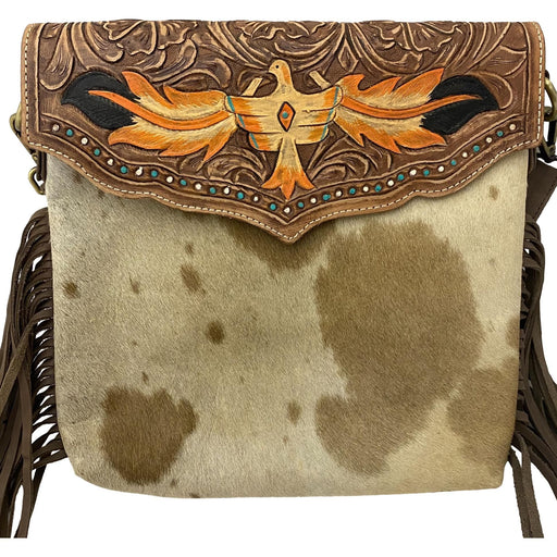 Phoenix Purse with Fringe Accent - Tooled Leather and Hair on Cowhide Bag
