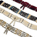This Indian replica jewelry is crafted with natural leather, bone, glass and metal beads, feathers, sinew and stainless wire. Great for native apparel, costumes, and black powder use.