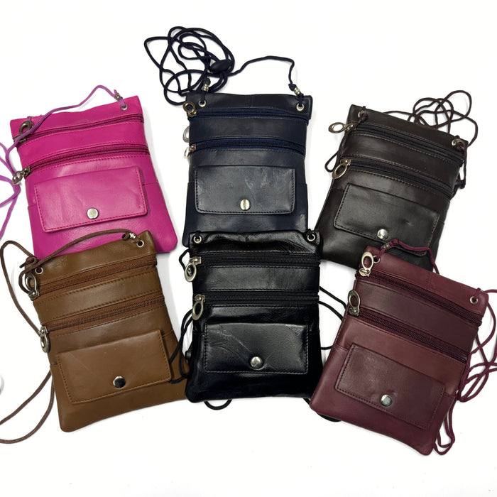 3 Zipper Leather Travel Pouch Bag - Small Cross Body Purse