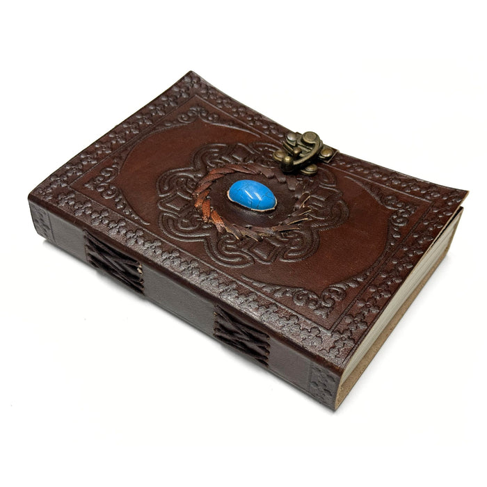 Leather Journal with Turquoise Stone, Floral Designs, and Swivel Lock - Embossed Notebook with Blank Paper for Writing or Drawing