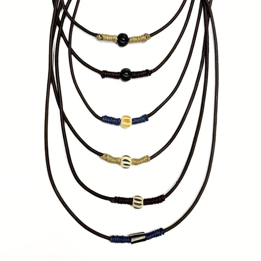 6 Pack Leather & Bone Bead Necklaces