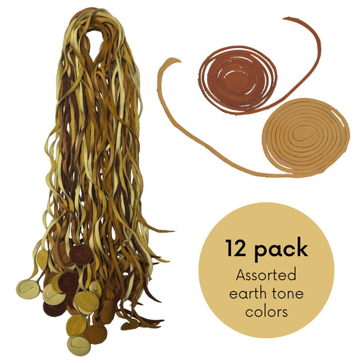 5 oz Leather Lace Cords - Assorted Earthtone, Black and Browntones Colors 3/16" wide - 12 pack or 25 pack of strips
