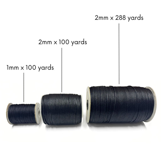 Black Waxed Cotton Cord Lace Spool - 1mm x 100 yards - 2mm x 100 yards - 2mm x 288 yards