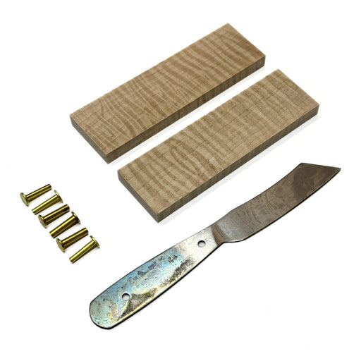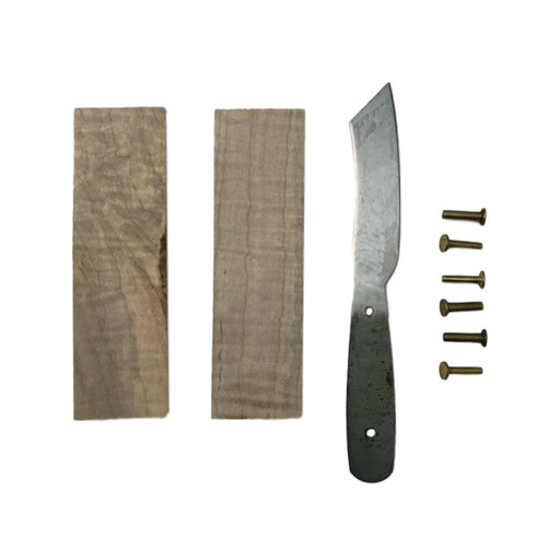 This Norwegian type knife kit contains one pacific paring blade, a set of curly maple scales, 3 sets of cutler rivets, and an illustrated instructi...