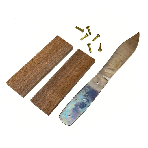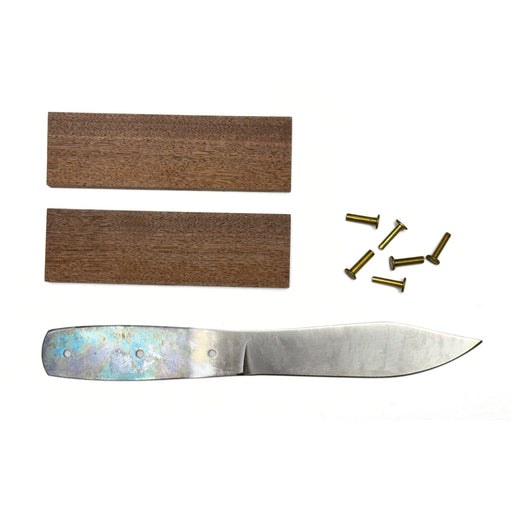 This hunter knife kit contains one 5" hunter pattern blade, one set of walnut handle scales, two sets of cutler rivets, and an illustrated instruct...