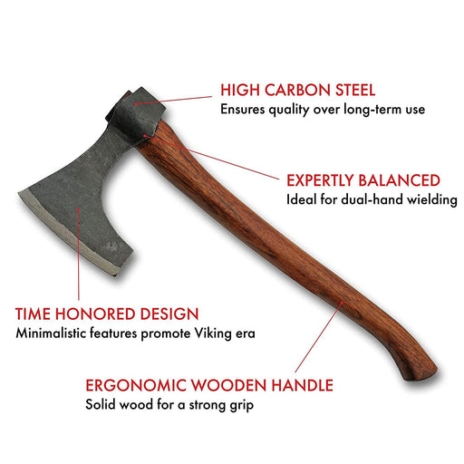 This 17-inch Viking style axe is a must-have for all of your outdoor needs! Crafted with a premium high-carbon steel head and a solid all-wood hand...