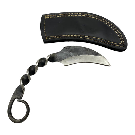 Forged Railroad Spike Twist Karambit - Unique Carbon Steel Knife