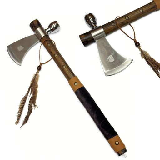 18.5" Tomahawk Peace Pipe with Feather Accent