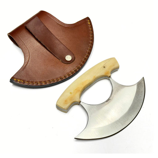 This Alaskan ulu knife features a durable 5.5" blade paired with a smooth bone handle for a comfortable grip. This traditional design makes it idea...