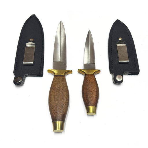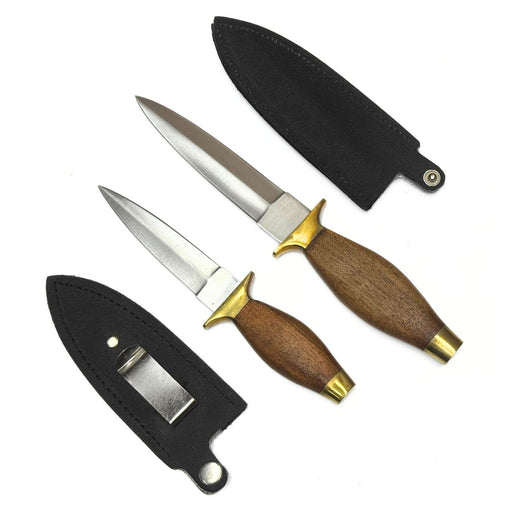 This Double Edge Boot Knife features a sturdy wooden handle paired with a brass guard and pommel for durability and classic style. Available in two...