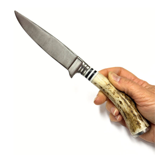 Small Patch Skinner Knife with Stag Bolster and Wooden Handle