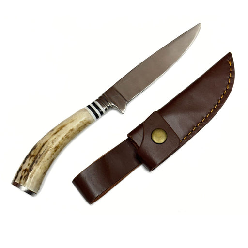 Bowie Hunter Knife with Bone Handle and Leather Sheath