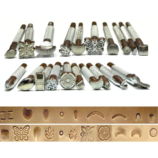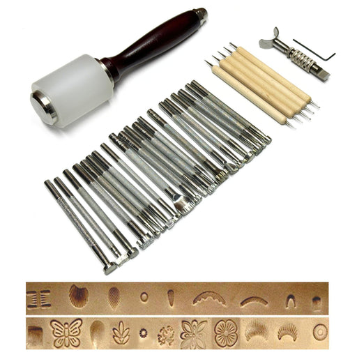 A quality leather craft tool set perfect for stamping and carving oak leather. Kit includes 20 stamping tools,1 swivel knife, 1 mallet and 5 carvin...