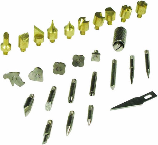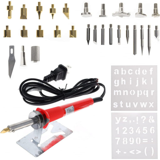 Personalize your products with this quality wood burning & leather branding set. Also great for soldering items. Set includes: 7.75" UL 25 wat...